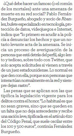 Con motivo de la reciente oleada de vejaciones en redes sociales con especial escarnio a los famosos, distintos medios de comunicación (El Mundo, Radio Inter y Cadena COPE) me han pedido, en calidad de abogado de Abanlex, unas declaraciones sobre el asunto para arrojar un poco de luz y tratar de explicar las cuestiones legales de forma que sean fácilmente comprensibles.